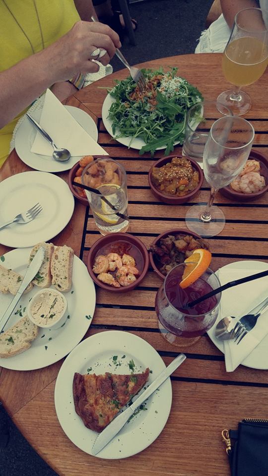 It all started on Friday with a night out. Helen, Nisha, a few other friends and I went to out for tapas and drinks. First stop was at a place called Kaz Bar. We enjoyed tortilla, shrimp, humus and other tapas, all of which were very tasty. I had Tinto Naranja for my drink, not as good as Spain but it was still good.