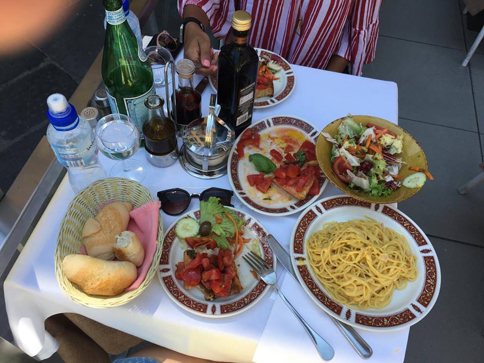 We ordered some yummy food to share and enjoyed the atmosphere. Here we ate spaghetti Carbonara, salad and bruschetta. We really enjoyed our meal here, the waiter was nice and the location was pretty. We took a few pictures in the area after eating and then continued our walk to The Ponte Vecchio.