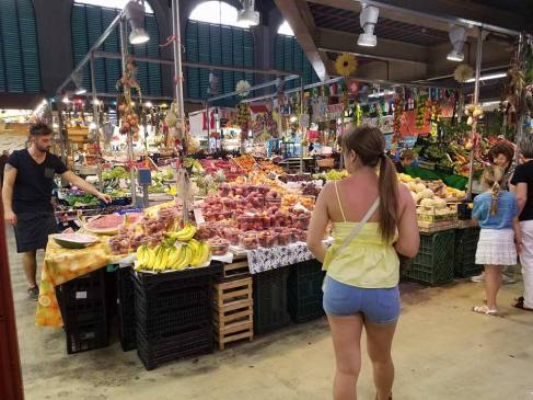 We walked through just looking at a lot of the stalls knowing we would be back later in the day. There is also a big 2 story indoor market. On the bottom floor, we found everything from fresh fruit to flowers to butchers and much more. And you know I HAD to buy some fruit, it looked so fresh and ripe. I paid for my strawberries and then we made the decision to find bubble tea. Very UN-Italian of us. Later we discovered that the top floor of the covered market was booming with loads of bistros.