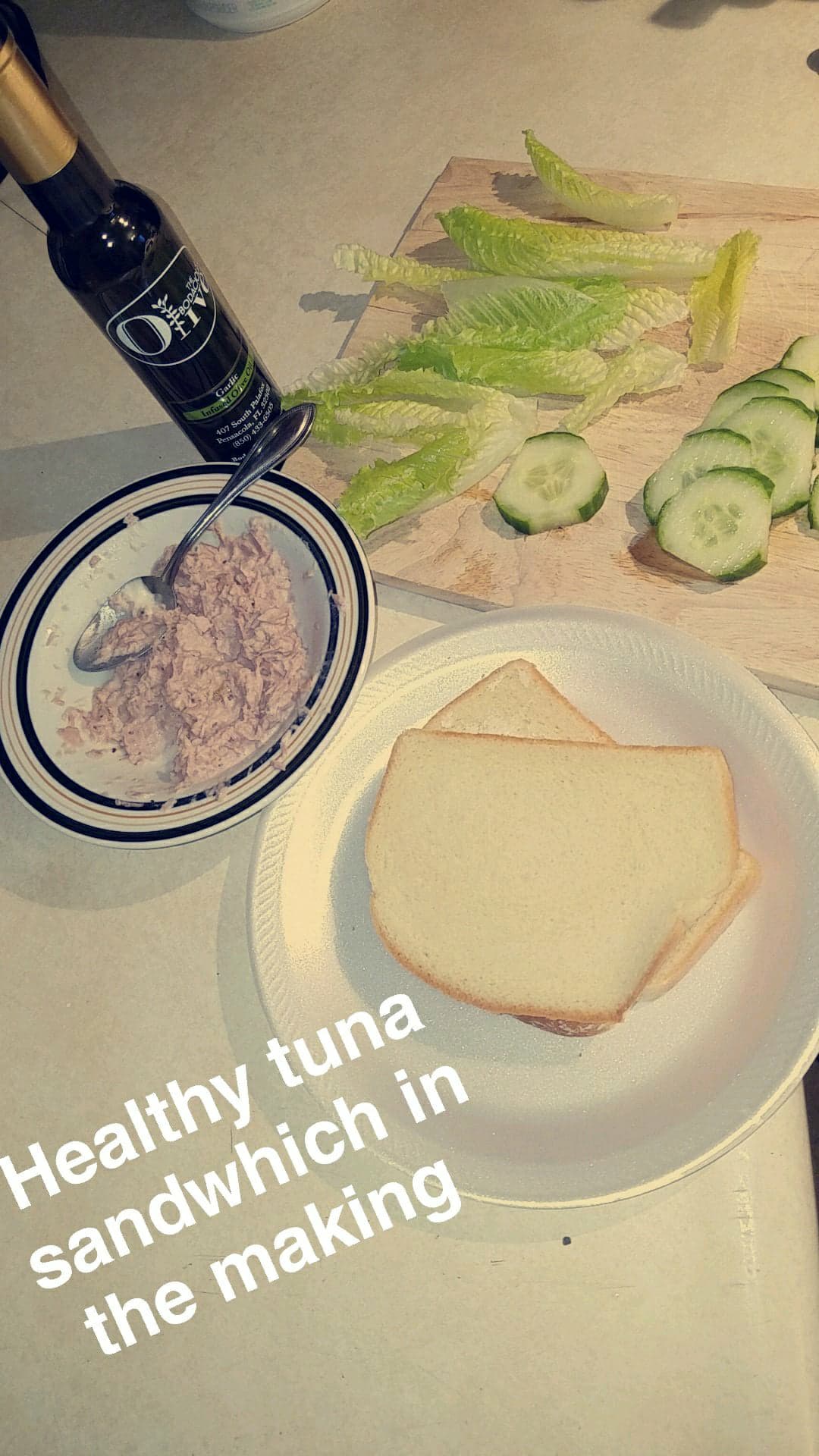 For Breakfast I had a big bowl of oatmeal and fruit, all with in the correct serving size for me. Then for lunch I enjoyed a tuna sandwich and small salad.